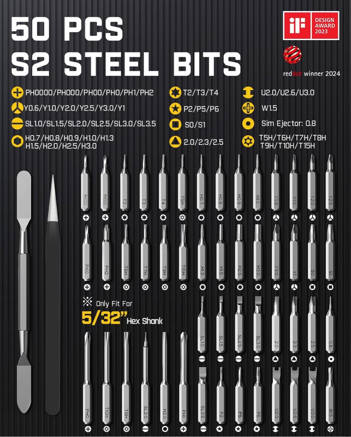 The LED light and magnetic bits are such a smart touch. It’s my favorite tool for tech repairs and home projects.